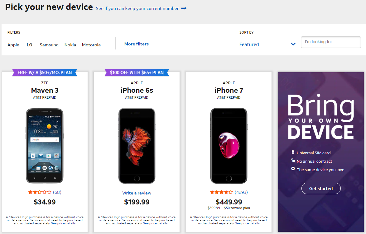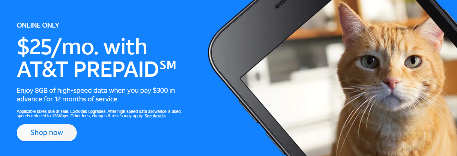 Only $25/month with AT&T Prepaid. No annual contract, No credit check, No activation fee, High-speed Data, and all on the Nation's Best Network!